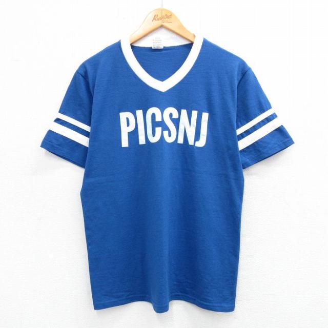 古着 エンパイア 半袖 ビンテージ Tシャツ メンズ 80年代 80s 17 Vネック USA製 青他 ブルー Mサイズ 中古 中古 古着