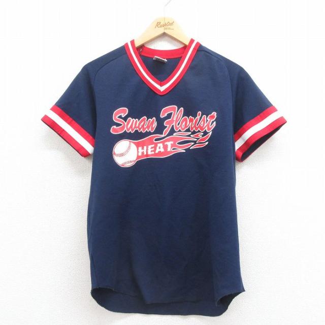 【商品名】 M★古着 エンパイア 半袖 ビンテージ Tシャツ メンズ 80年代 80s 17 Vネック USA製 青他