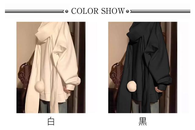 | かわいさ抜群!ロングうさ耳パーカー ふわっとしたシルエットで体型カバーも叶える、可愛いうさ耳パーカー。 ロングのうさ耳フードに、後ろ姿が映えるふわふわポンポン尻尾付き。 キュートで着やすい「兎耳パーカー」、体型カバーもできて、毎日のおしゃれやリラックスタイムをもっと楽しくしてくれるアイテムです。 ふわふわポンポンしっぽは取り外し可能で、お好みに合わせてアレンジできるのも嬉しいポイント。 | |