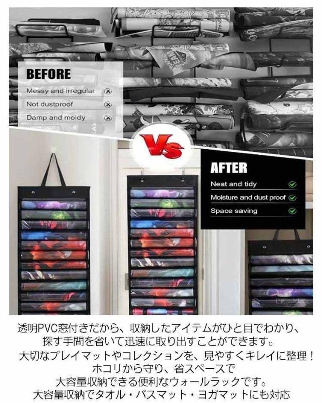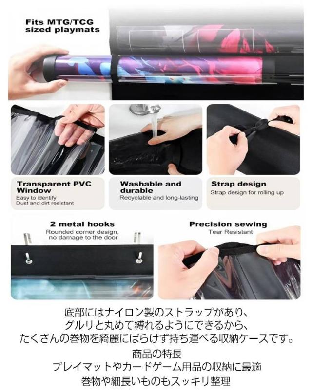 吊り下げ収納 透明PVC窓 ウォールポケット プレイマットケース カードゲーム用 TCGサイズ専用設計 細長いもの 壁掛けホルダー ラック 大容量 ほこり防止 巻物収納 プレイマットケース タオル バスマット 省スペース収納 防塵