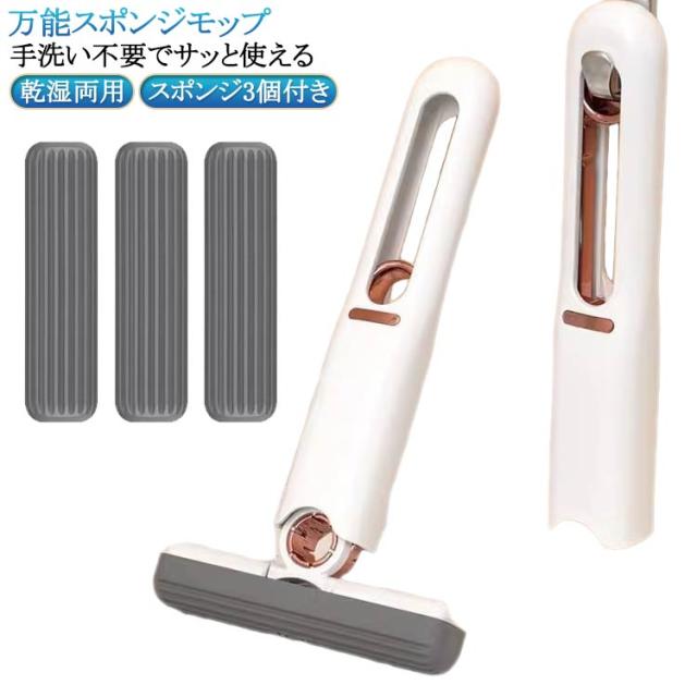 スポンジモップ 水拭きモップ ミニ ミニモップ 吸水モップ スポンジ3個付き 水切りモップ モップ 水拭き フロアモップ モップ 小型 給水ワイパー 手洗い不要 吸水スポンジワイパー 水拭き 多機能 乾湿両用 スポンジぞうきん
