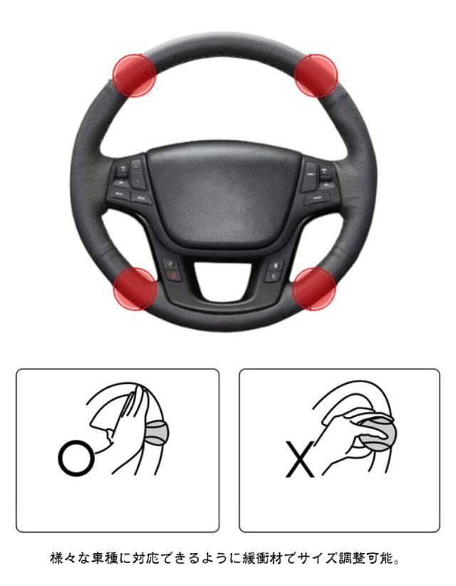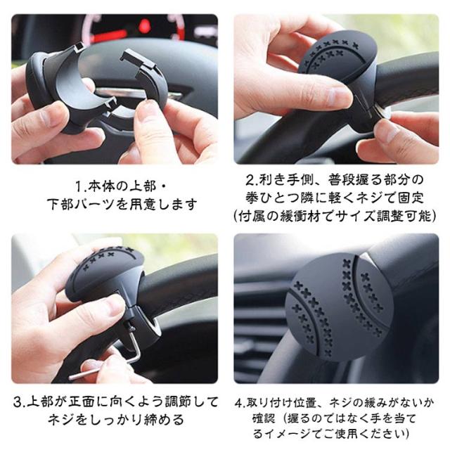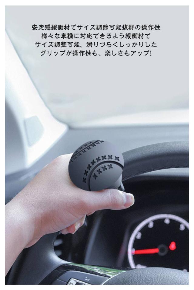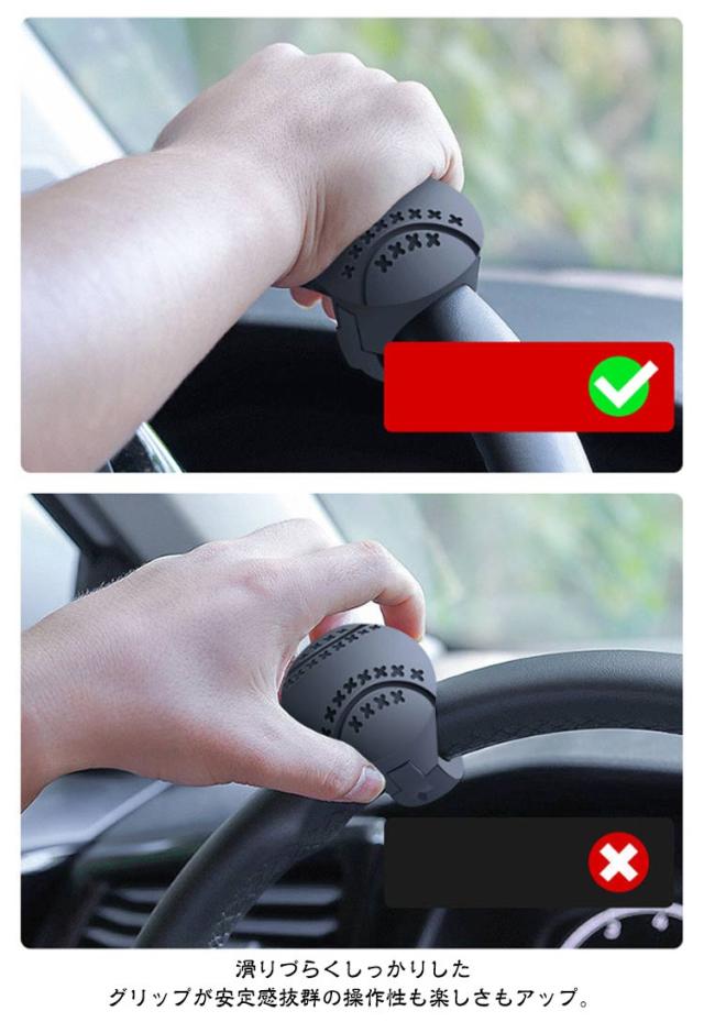 | ハンドルスピンナー 【2個セット】 ハンドルスピンナーでドライブがもっと楽しくなる! 疲れ知らずで快適に運転する為のマストアイテム! <商品特徴> ・高性能ボールベアリング内蔵の360°スムーズ回転で、運転をサポート。 ・様々な車種に対応できるように緩衝材でサイズ調整可能。 ・滑りづらくしっかりしたグリップが安定感抜群の操作性も楽しさもアップ。 ・楕円形状のシリコンラバーは手触り最高の相棒に! ・滑り止めシートで動くストレスもなく、手の平にフィットするからずっと触り続けたくなる感覚に。 <お勧めポイント> ●ポイント1 高性能ボールベアリング内蔵 スムーズ回転 ヘッドは手の平にフィットする疲れにくいデザイン。なめらかな回転で運転をサポート、劣化しづらく耐久性に優れている。 ●ポイント2 安定感緩衝材でサイズ調節可能抜群の操作性 様々な車種に対応できるよう緩衝材でサイズ調整可能。滑りづらくしっかりしたグリップが操作性も、楽しさもアップ! ●ポイント3 手触り 楕円形状シリコンラバー最高の相棒に 滑り止め用シートが付属されていて動くストレスもなく、手の平にフィットするからずっと触り続けていたくなる感覚に <取り付け方法> ハンドルスピンナーの取り付け位置を決めて、ハンドルに本体パーツをはめ込み、ネジで2箇所を固定します。 特別な工具などは必要なく、セットの四六角レンチだけでカンタンに設置できます。 1.本体の上部・下部パーツを用意します 2.利き手側、普段握る部分の拳ひとつ隣に軽くネジで固定(付属の緩衝材でサイズ調整可能) 3.上部が正面に向くよう調節してネジをしっかり締める 4.取り付け位置、ネジの緩みがないか確認(握るのではなく手を当てるイメージでご使用ください) | |