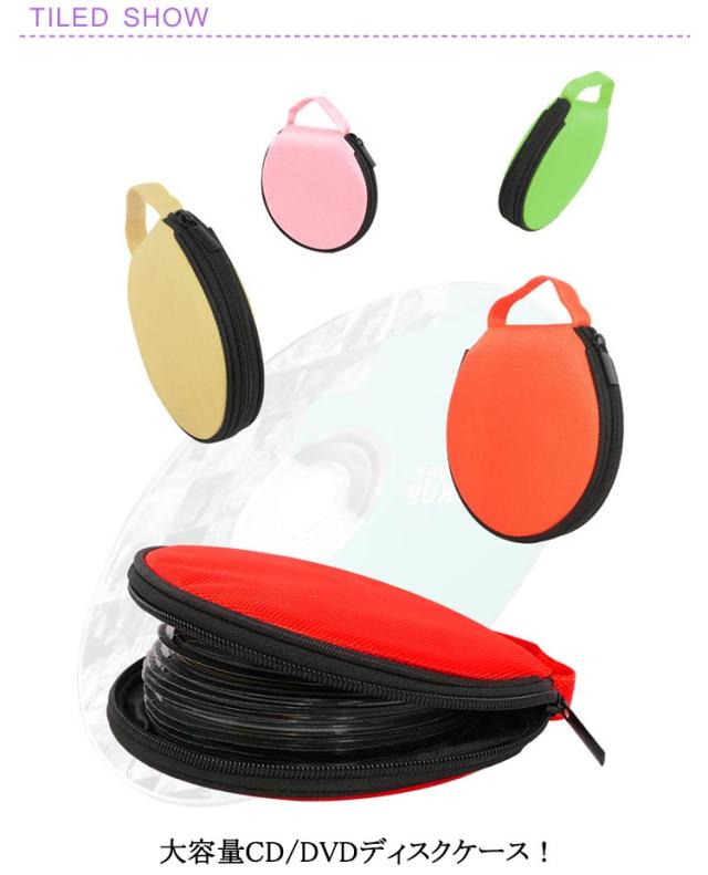 DVDケース おしゃれ 円形 おしゃれ 車 20枚収納可能 ファスナー付 CDホルダーバッグ 持ち運び ハンドル付 旅行 CDケース ディスク収納 保護 ケース