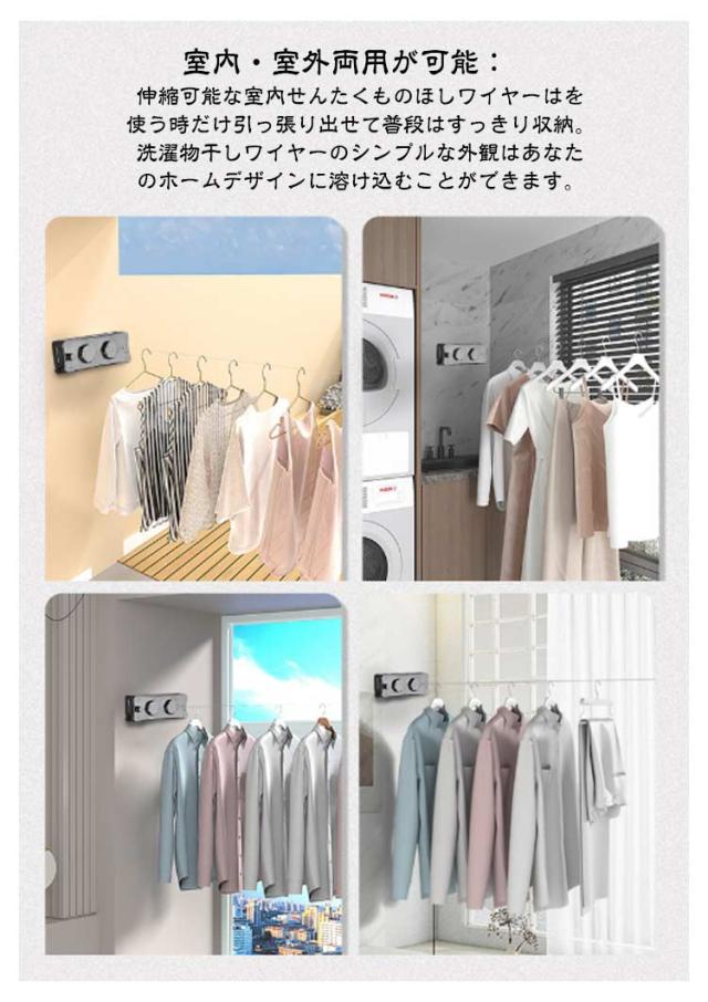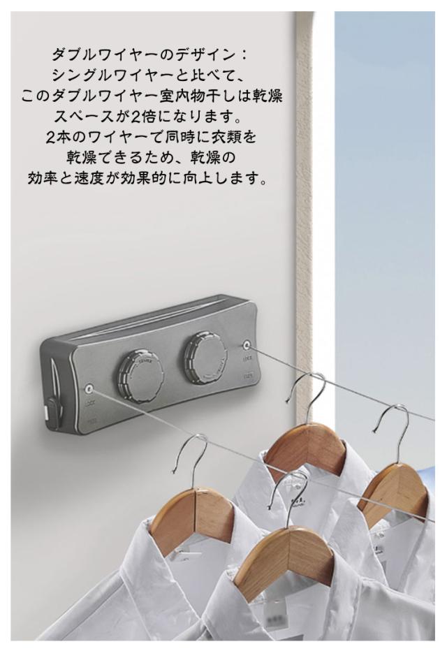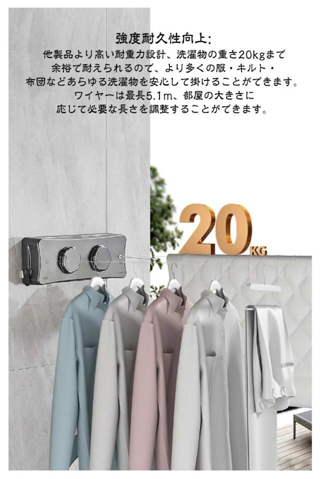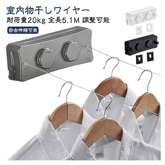 耐荷重20kg ワイヤー 洗濯物干しワイヤー 物干しワイヤー 自由伸縮可能 二倍物干し 部屋壁掛け 室内物干し 洗濯物干し 隠し物干し用ロープ 部屋干し 全長5.1M ステンレス 防水 防錆 梅雨対策 省スペース