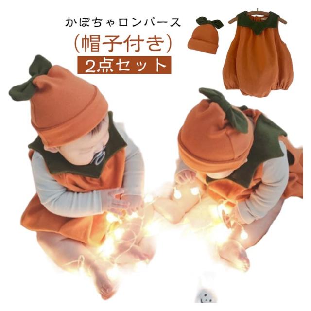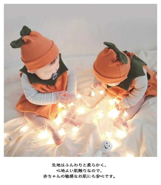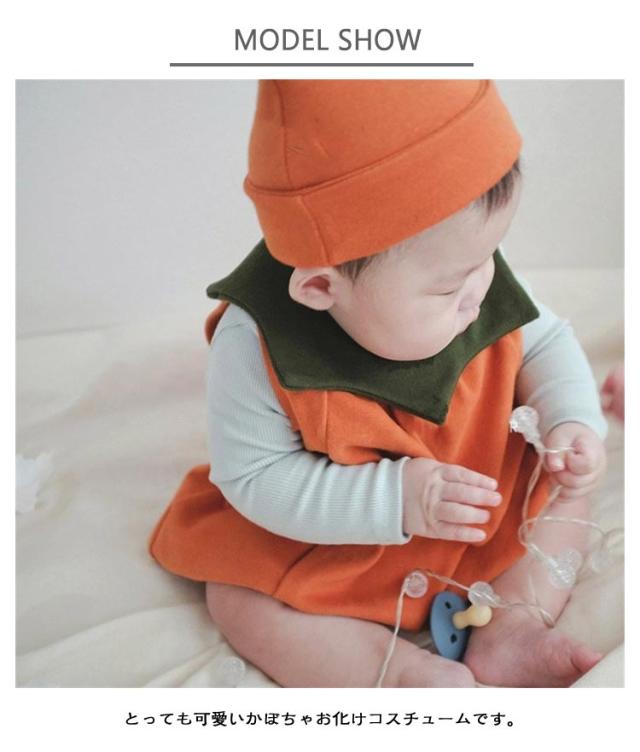 ベビー キッズ 衣装 孫 かぼちゃ コスチューム ベビー 2点セット 帽子付き 仮装 ハロウィン 子供 ロンパース baby halloween カボチャ 保育園 コスプレ パーティー パンプキン なりきり ハロウィーンコスプレ かぼちゃおばけ おばけ お祝い プレゼント