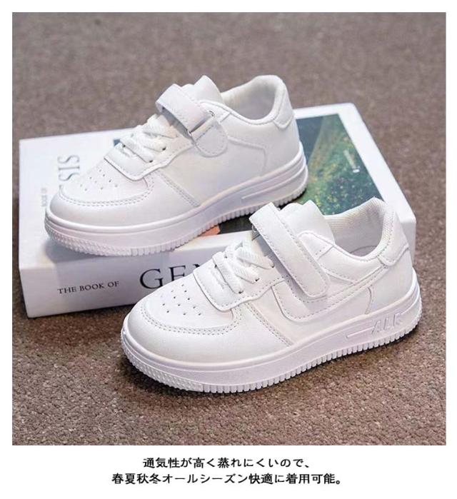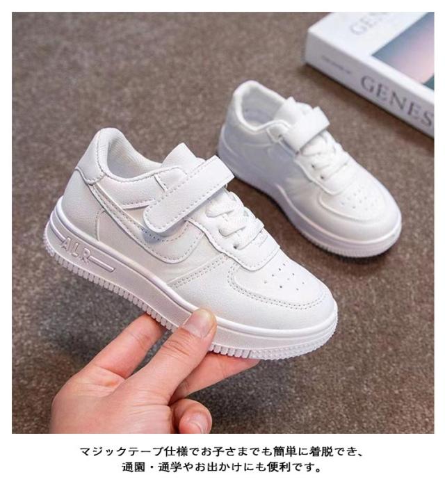 | 18.0-23.5cm 軽量で履きやすいキッズ用スニーカーです。 シンプルな無地デザインの白靴で、ダンスや運動、普段使いなど幅広く活躍。 マジックテープ仕様でお子さまでも簡単に着脱でき、通園・通学やお出かけにも便利です。 通気性が高く蒸れにくいので、春夏秋冬オールシーズン快適に着用可能。 厚底仕様で足への負担を軽減し、成長期のお子さまの足をしっかりサポートします。 男女問わずおしゃれに履ける万能シューズです。 | |