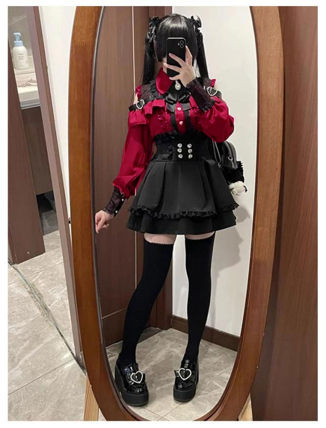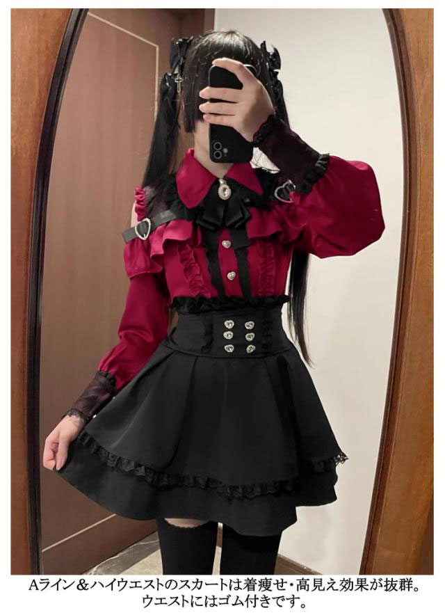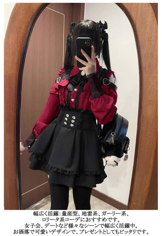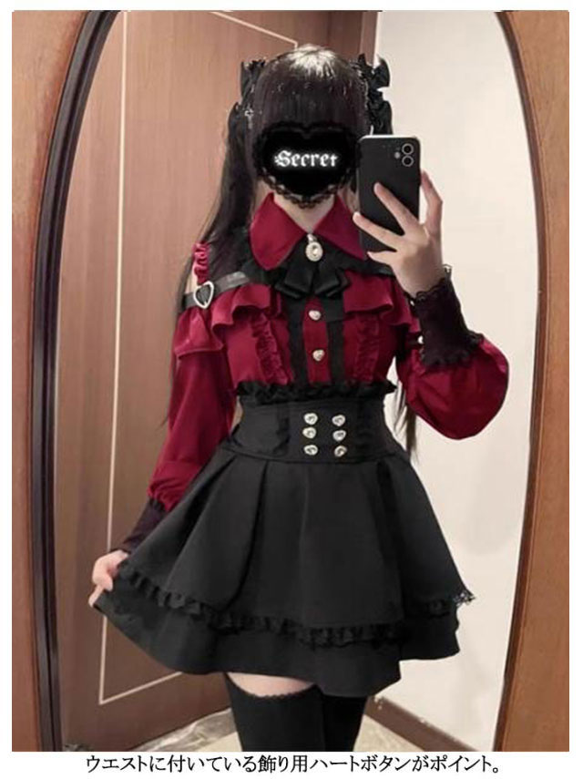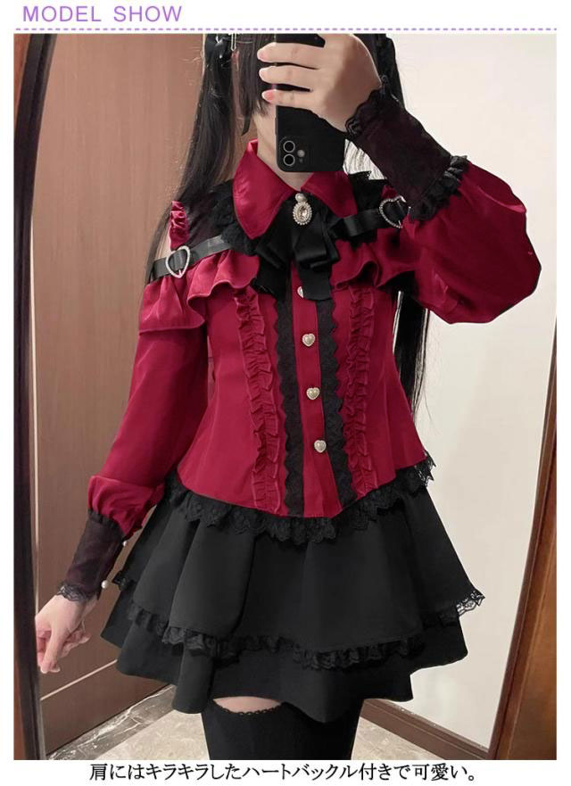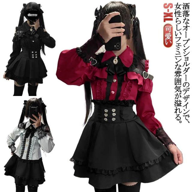 | お洒落なオープンショルダーのデザインで、女性らしいフェミニンな雰囲気が溢れる。 肩にはキラキラしたハートバックル付きで可愛い。 袖口にもレース付きで、華やかさがUP。リボンブローチが取り外し可能です。 ウエストに付いている飾り用ハートボタンがポイント。 Aライン&ハイウエストのスカートは着痩せ・高見え効果が抜群。ウエストにはゴム付きです。 幅広く活躍:量産型、地雷系、ガーリー系、ロリータ系コーデにおすすめです。女子会、デートなど様々なシーンで幅広く活躍中。お洒落で可愛いデザインで、プレゼントとしてもピッタリです。 | |