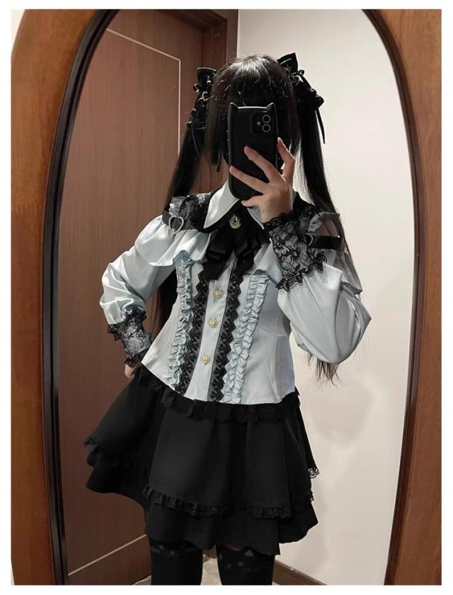 | サイズについての説明 | 3点セット:「長袖ブラウス」+「ミニスカート」+「リボンブローチ」 ※サイズ表の実寸法は商品によって1-3cm程度の誤差がある場合がございます。 |