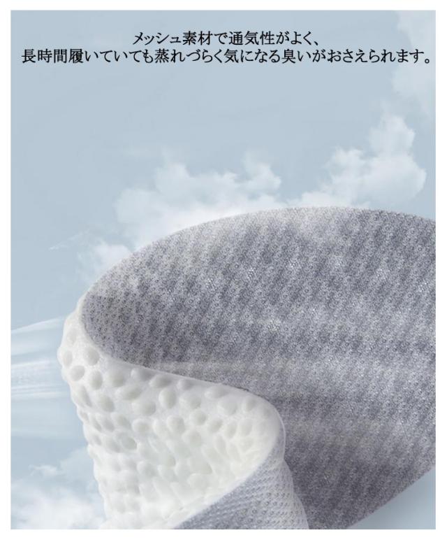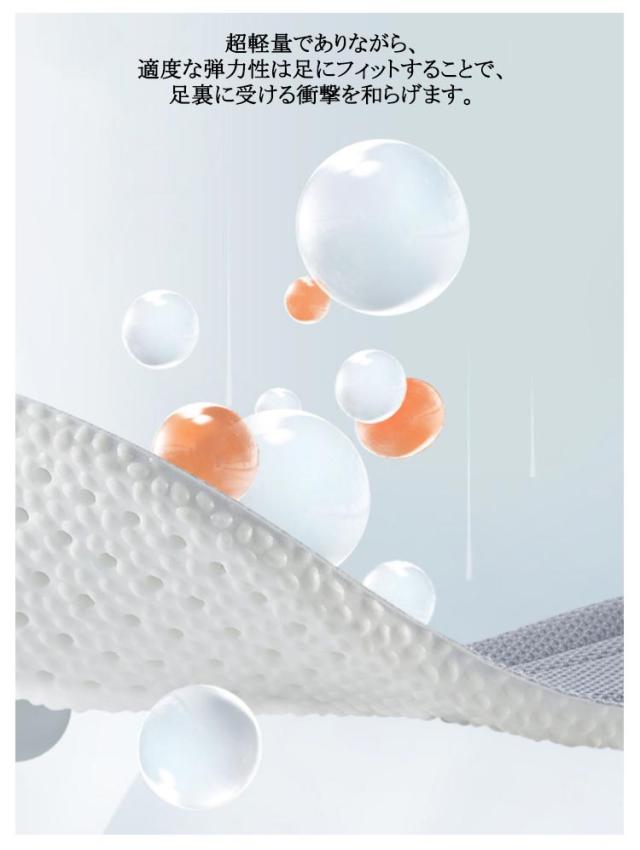 | 2足組!クッション性と反発性を兼ね備えたインソール。 柔らかくクッション性に優れし、長時間のご使用でも体への負担なく快適に歩いていただけます。 超軽量でありながら、適度な弾力性は足にフィットすることで、足裏に受ける衝撃を和らげます。 U字カップ構造で、かかとを包み込むようにフィット、抜群の安定感を実現する。 メッシュ素材で通気性がよく、長時間履いていても蒸れづらく気になる臭いがおさえられます。 自分のサイズに合わせて家庭用のハサミで簡単にカットできます。 通勤や通学、スポーツ、立ち仕事や営業の人には最適です。 | |