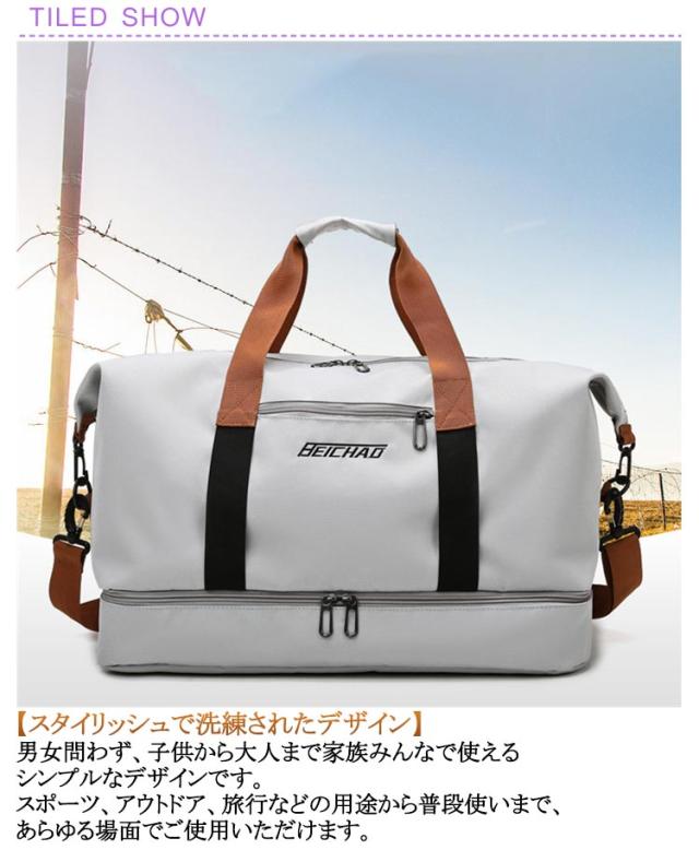 | 2タイプ×7色! 【機能性抜群!たっぷり入る6つの収納】 大容量なのにとっても軽いボストンバックです。 メイン収納の他に、乾湿分離ポケット、シューズ収納ポケット、小物を入れるポケットが3つあり、荷物を分けて収納できます。 シューズ収納を想定した下部は大きく開口し、出し入れや中身の見やすい便利な形状です。 【持ち運びラクラク、驚きの軽さ】 ボストンバッグ本体の重量はたっだ460g!ショルダーベルトも付属しているので荷物が多くても安心。旅行のサブバッグとしてもおすすめです! 【お手入れ簡単!傷がつきにくく丈夫な素材】 耐久性が高く、撥水効果のあるポリエステル生地を採用しているので急な雨でも安心。 上品な光沢があり、傷もつきにくく、シワもできにくい。汚れた場合は水で手洗いが可能です。 【スタイルに合わせて使える3wayタイプ】 手持ち、肩掛け、キャリーオンバッグとして3wayで使えます。 ゴルフバッグ、ジムバッグ、ヨガバッグ、プールバッグ、スポーツバッグ、旅行バッグ、トラベルバッグ、非常用バッグ、お買い物バッググに。 小学生の修学旅行のバッグや出張用としてもおすすめです。 【スタイリッシュで洗練されたデザイン】 男女問わず、子供から大人まで家族みんなで使えるシンプルなデザインです。 スポーツ、アウトドア、旅行などの用途から普段使いまで、あらゆる場面でご使用いただけます。 | |