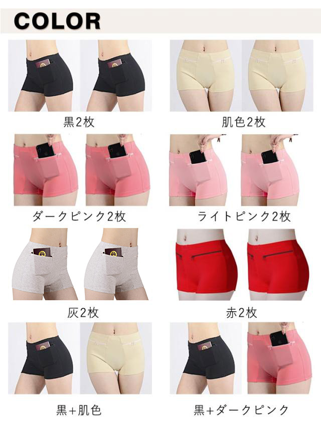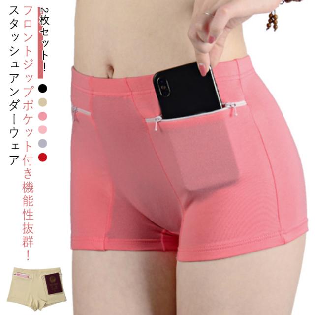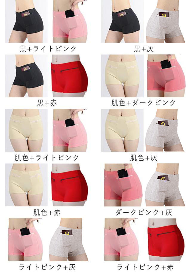 レディース ボクサーパンツ 盗難対策 ポケット付きショーツ ポケット付きショーツ オーバーショーツ 下着 無地 貴重品入れ アンダーウェア インナーパンツ ジップポケット 隠しポケット付 防犯 インナー 女性用 ボクサーパンツ 海外旅行 パスポート お金 補助 失くし物防止