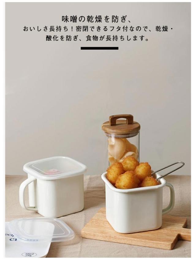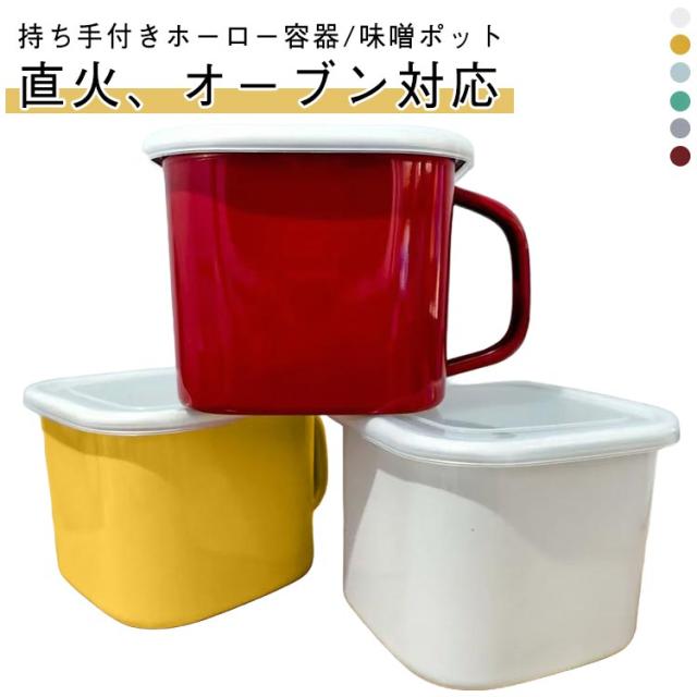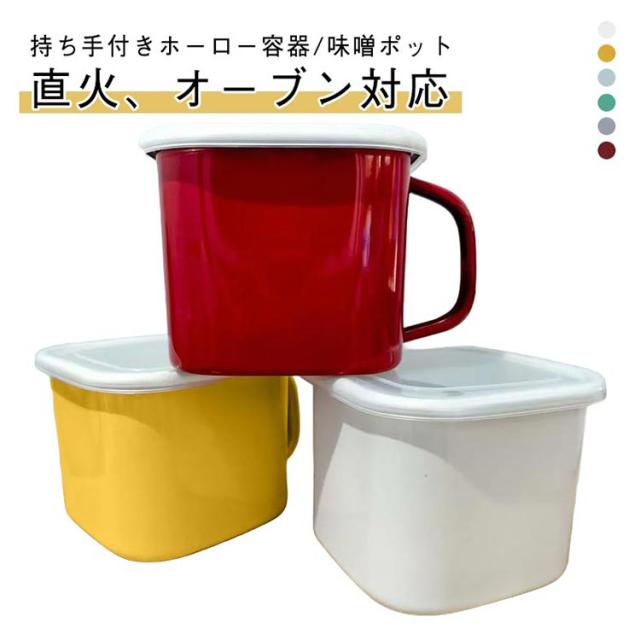 保存容器 琺瑯容器 ホーロー 持ち手付 味噌ポット 調味料入れ 直火可 蓋付き ストッカー 味噌容器 オーブン可 味噌ポット ホーロー容器 保存 ぬか漬け 梅干し 味噌 漬け物 米びつ おしゃれ かわいい