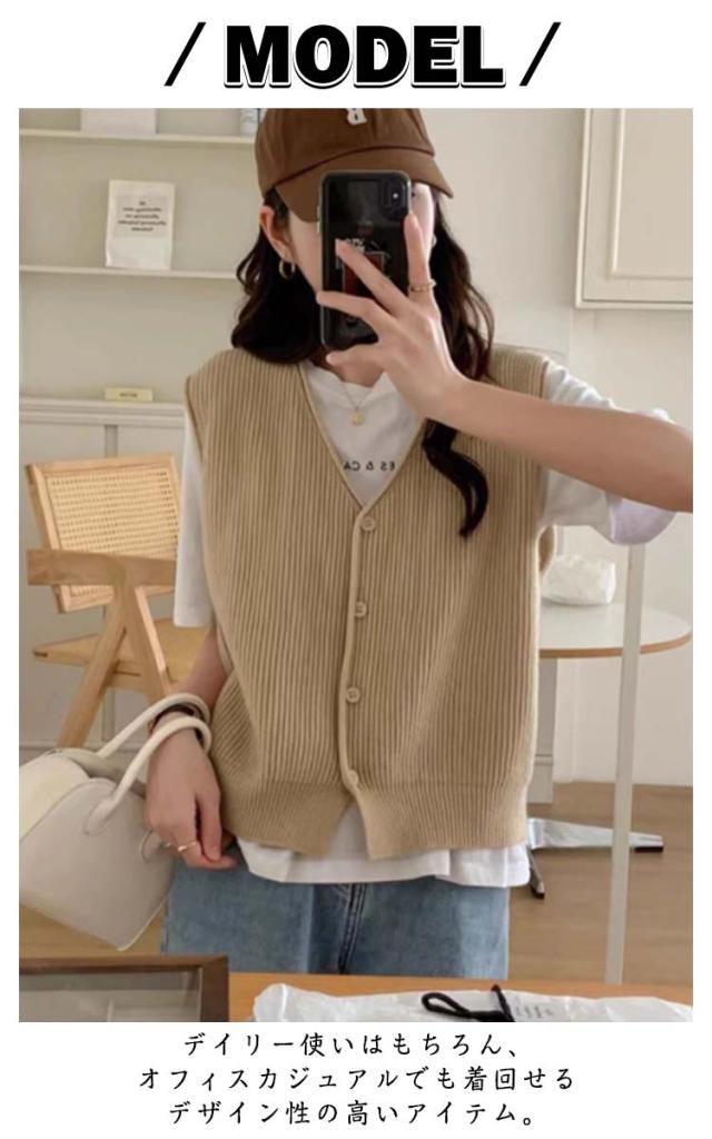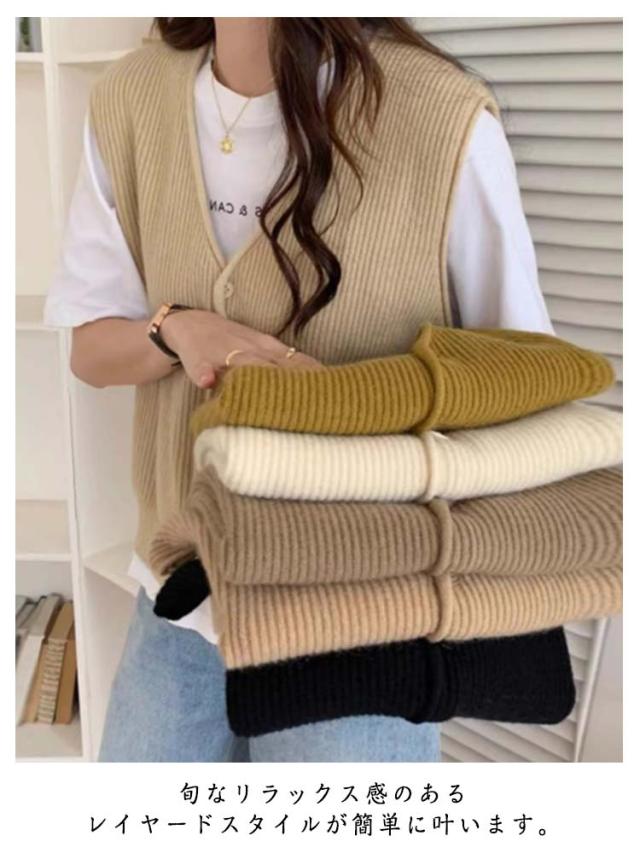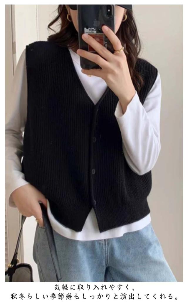 重ね着 レディース 通勤 ベスト レイヤード OL 無地 ニットベスト Vネック ニット 前開き 秋服 重ね着 大人 女性 ニットベスト 春 秋 冬 秋冬 トップス カジュアル フェミニン ゆったり オシャレ 薄手 可愛い