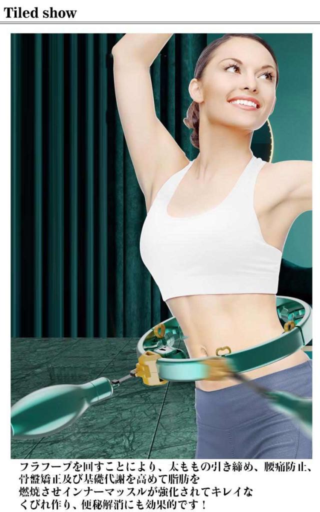 | 理想的なくびれ!スマートフラフープ(組み立て式)。フラフープを回すことにより、太ももの引き締め、腰痛防止、骨盤矯正及び基礎代謝を高めて脂肪を燃焼させインナーマッスルが強化されてキレイなくびれ作り、 便秘解消にも効果的です! ダイエット効果!脂肪燃焼の高速化-通常のフラフープの2〜3倍の速さで脂肪を燃焼。ウエストを強化するために1日30分。 人間工学に基づいた設計!インテリジェントなカウント機能を備えており、体の脂肪をすばやく消費して疲労を取り除き、自宅/オフィスでの使用に最適です。 | |