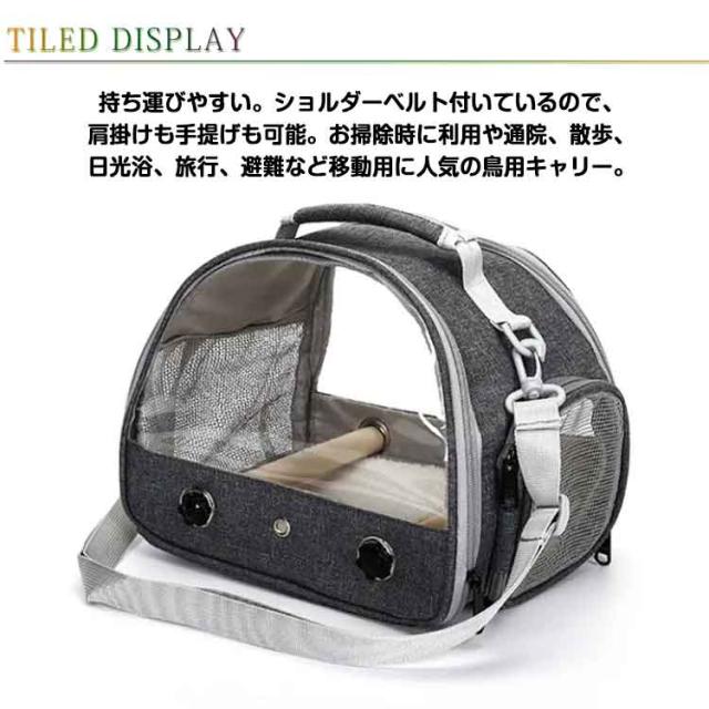 | 鳥用キャリーバッグ。インコキャリーに止まり木と底トレーつき。小鳥の移動に欠かせないとまり木が付属し、移動中も愛鳥が中で動き回っている快適。引き出せるトレイは水洗いができ、いつでも清潔に。 通気性抜群!側面と裏面はメッシュ材を採用しているので、蒸し暑くなく、風通しよい。 出し入れしやすい。 持ち運びやすい。ショルダーベルト付いているので、肩掛けも手提げも可能。お掃除時に利用や通院、散歩、日光浴、旅行、避難など移動用に人気の鳥用キャリー。 | |