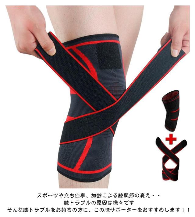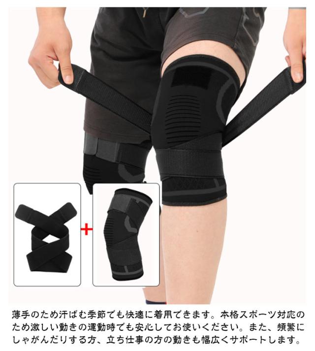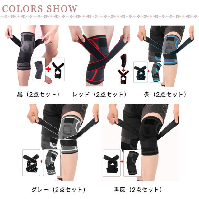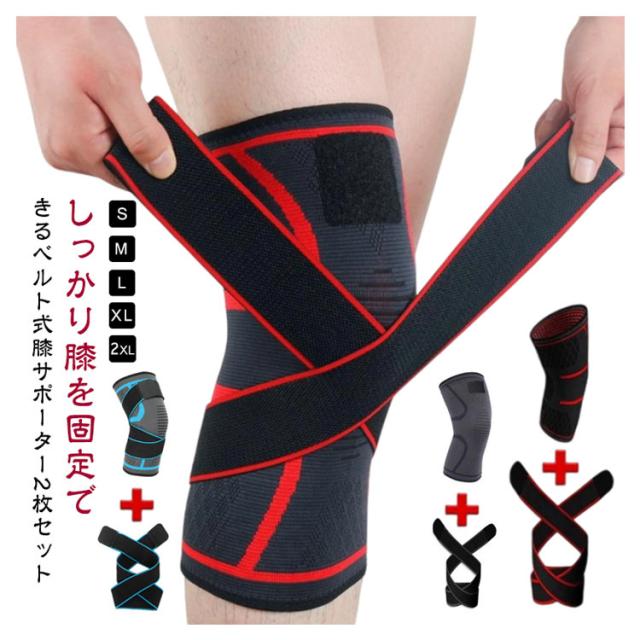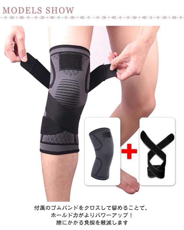 | 【しっかり膝を固定できるベルト式膝サポーター2枚セット】 付属のゴムバンドをクロスして留めることで、ホールド力がよりパワーアップ! 膝にかかる負担を軽減します スポーツや立ち仕事、加齢による膝関節の衰え・・ 膝トラブルの原因は様々です そんな膝トラブルをお持ちの方に、この膝サポーターをおすすめします!! ・ベルト式のため、用途に合わせて加圧調整できます。マジックテープでとめるタイプなので、装着も簡単です。 ・伸縮性・通気性がよく、立体編みされた生地を使用しています。長時間装着してもムレにくい快適素材。3D編み込みでぴったりフィットしズレずに動きやすい! ・薄手のため汗ばむ季節でも快適に着用できます。本格スポーツ対応のため激しい動きの運動時でも安心してお使いください。また、頻繁にしゃがんだりする方、立ち仕事の方の動きも幅広くサポートします。 ・スポーツ時の膝の保護や痛み・怪我の予防に役立つアイテムです。普段の生活での膝のお悩みにもお使いいただけます。 | |