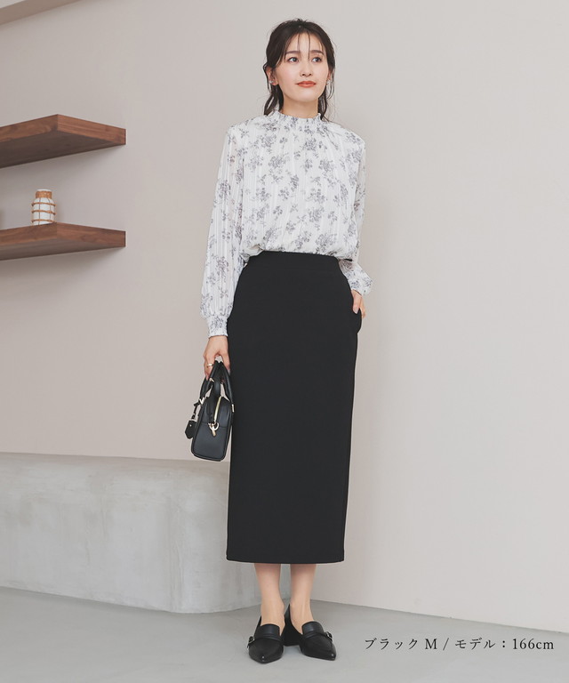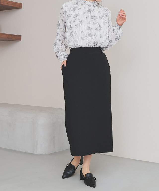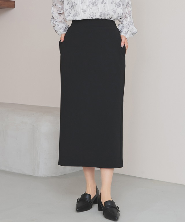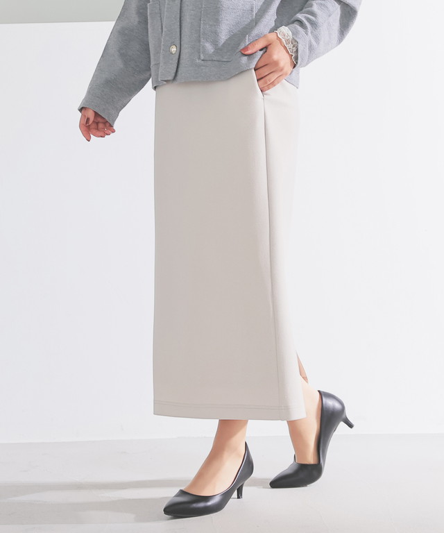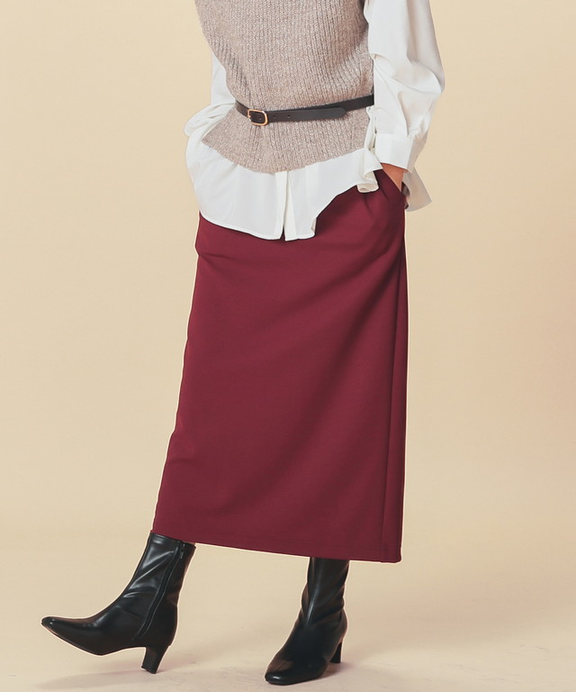 ボトムス スカート ロングスカート ロング丈 再生ポリエステル ストレッチ カットツイル素材 無地 裏地付き レディース Honeys ハニーズ ナロースカート