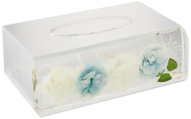 パシフィックGLD ティッシュBOXケース アクリル水中花 ホワイト&ブルー W24.5×D15×H8.5cm 58801