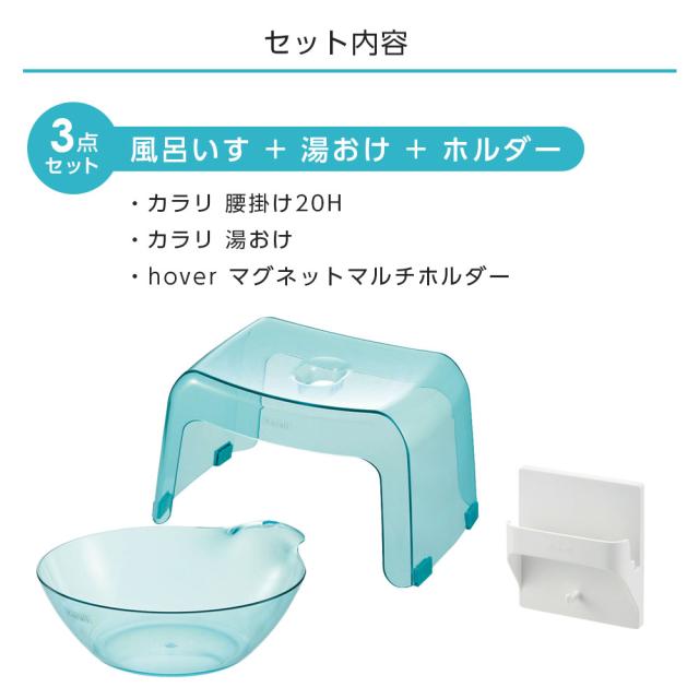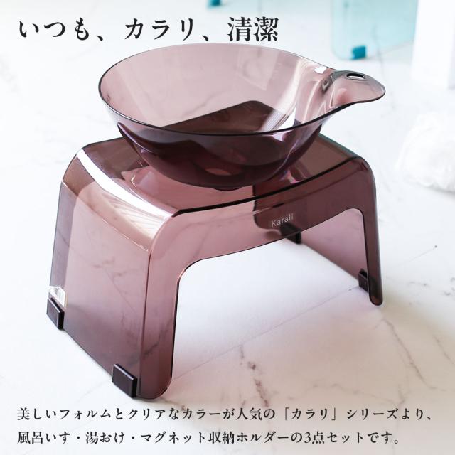リッチェル カラリ 風呂いす20cm+湯おけ+収納用マグネットホルダー | 風呂椅子 壁面収納 バスチェア マグネット おしゃれ 洗面器 湯桶 透明 風呂 壁 掛け 乾きやすい バス用品 Karali 浴室収納