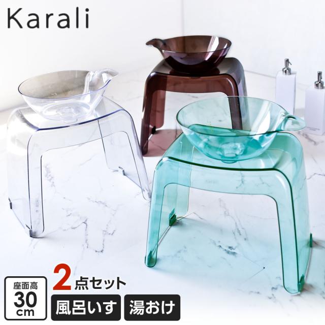 リッチェル カラリ バス用品2点セット 風呂いす30cm+湯おけ 選べるカラー | 風呂椅子30cm おしゃれ バスチェア 風呂 イス 桶 湯桶 バススツール 浴用品 入浴 透明 日本製 クリア Karali
