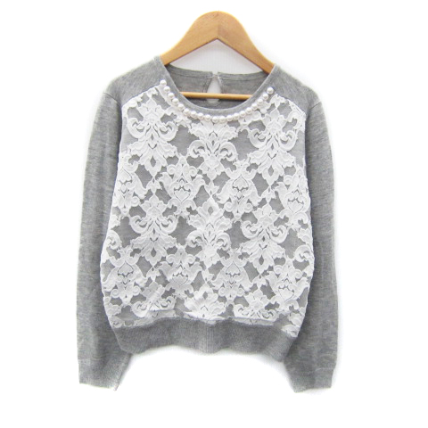 【中古】ヴェロフォンナ Re.Verofonna ニット カットソー 長袖 ダマスク柄 レース 38 M グレー /SY35 レディース