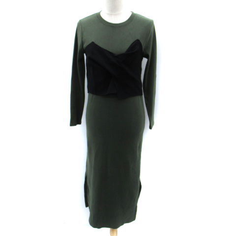 【中古】ロペ ROPE ワンピース マキシ丈 ロング丈 長袖 ビスチェ風 38 M カーキ 黒 ブラック /SM4 レディース