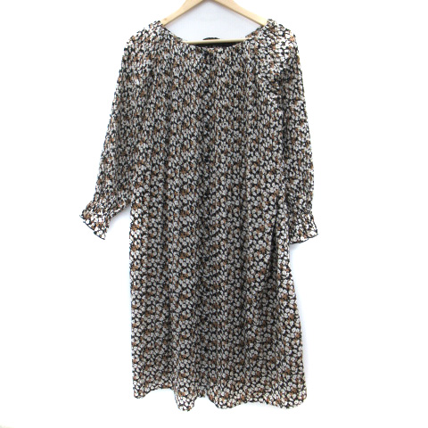【中古】ミスティック mystic プリーツワンピース ロング丈 長袖 花柄 F マルチカラー 黒 ブラック 茶 ブラウン
