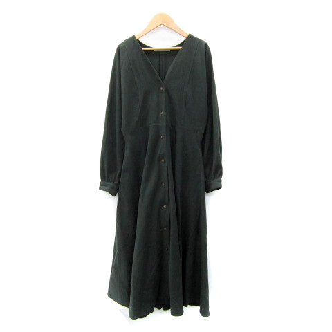 【中古】KBF アーバンリサーチ ワンピース ロング丈 マキシ丈 長袖 Vネック 無地 ONE モスグリーン レディース