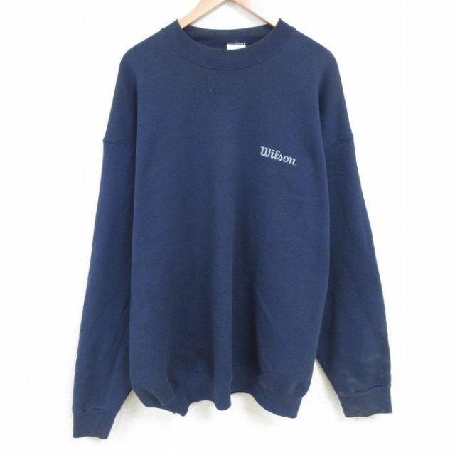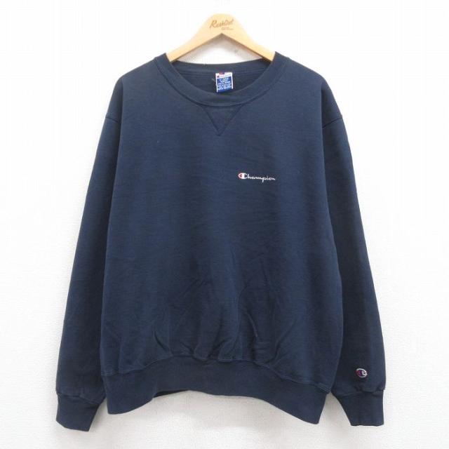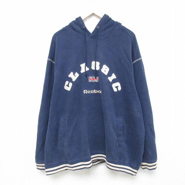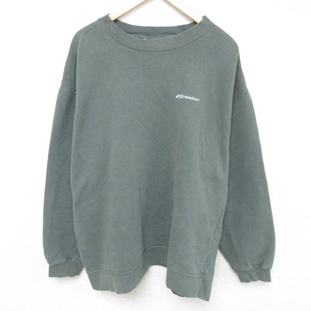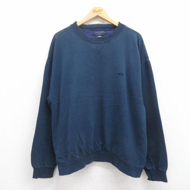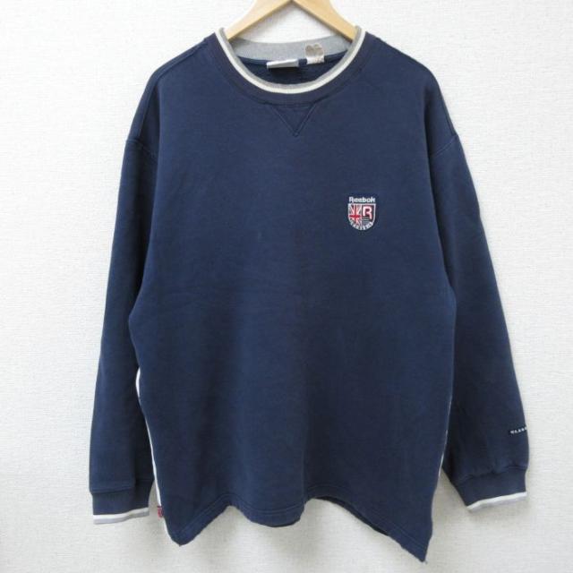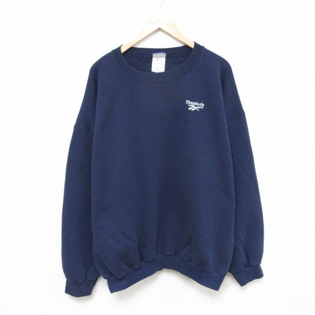 【商品名】 XL★古着 リーボック 長袖 スウェット メンズ 90年代 90s ワンポイントロゴ 大きいサイズ クルーネック 紺【spe】