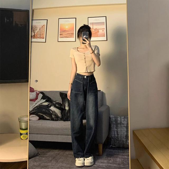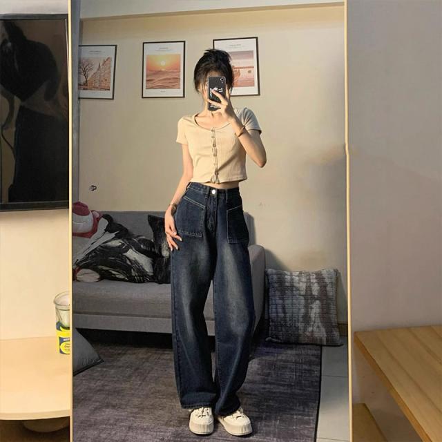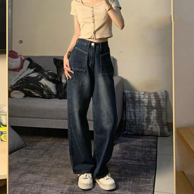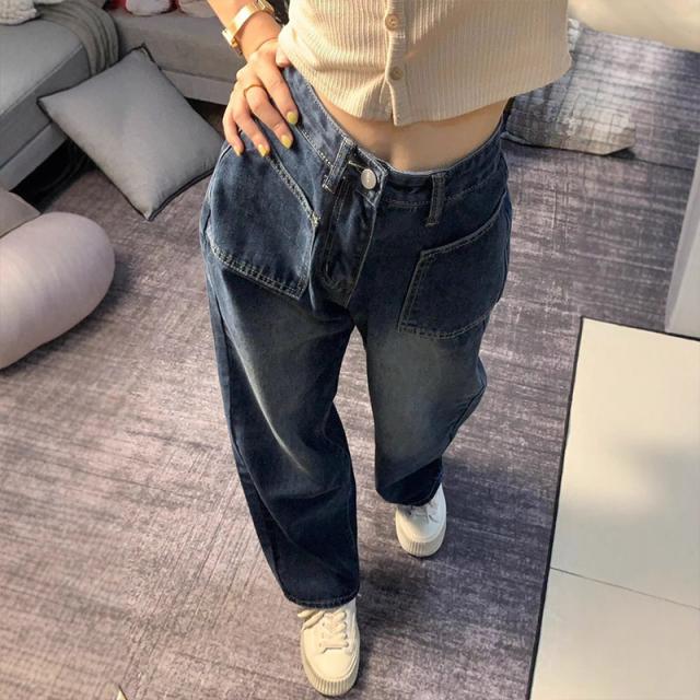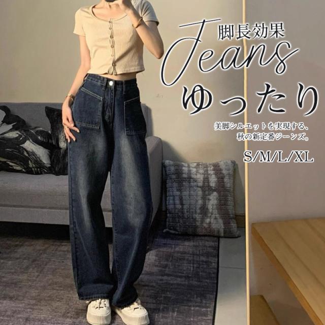 デニム パンツ デニムパンツ レディース ワイドパンツ ジーンズ ジーパン ストレート 体型カバー ゆったり ハイウエスト 脚長効果 美脚