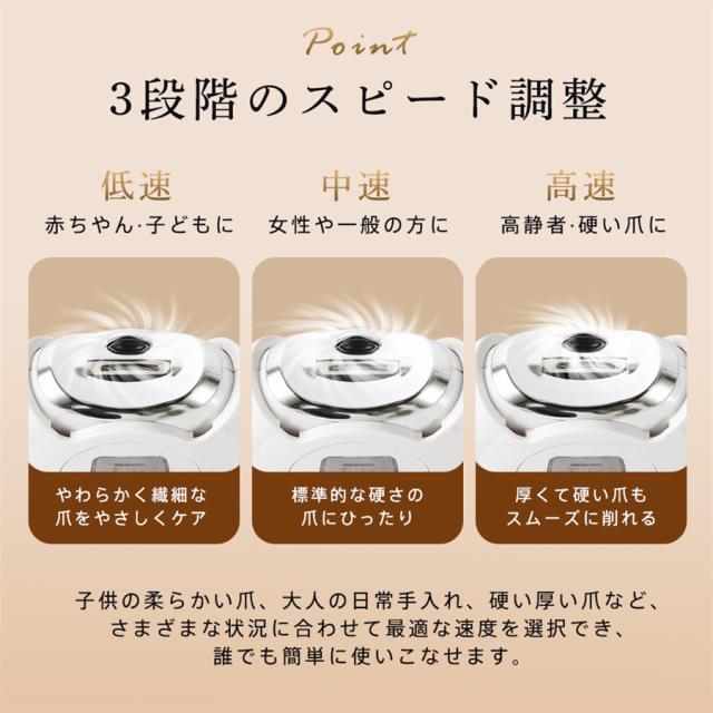 電動爪切り 電動爪削り 自動爪切り 爪切り 電動 爪とぎ 爪削り 爪磨き 3段階スピード 飛び散らない LEDライト Type-C充電式 爪傷防止 安全 低騒音 軽量 操作簡単 飛び散り防止 ゴミボックス内蔵 持ち運びに便利 子供 大人 高齢者 年寄り ブラシ付き 敬老の日 プレゼント