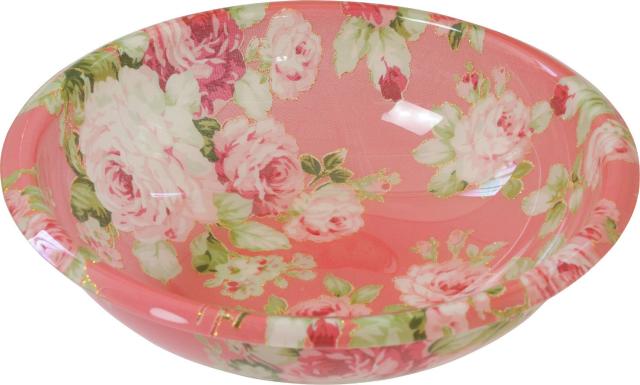 ◆商品名:ロイヤルアーデン 洗面器 風呂 桶 湯おけ ウォッシュボウル S アクリル 花柄 薔薇 カプリローズ 25×7cm 58662