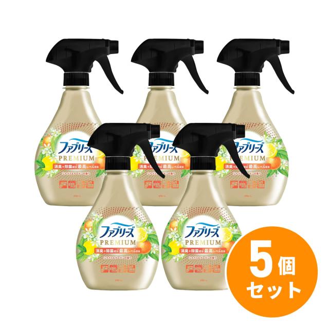 【まとめ買い】P&G ファブリーズ PREMIUM W除菌+消臭スプレー シトラス&ガーデンの香り 本体 370mL ×5個セット 消臭スプレー 衣類用 布製品 消臭剤 消臭