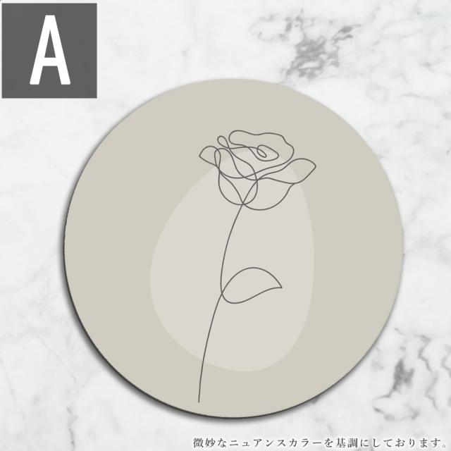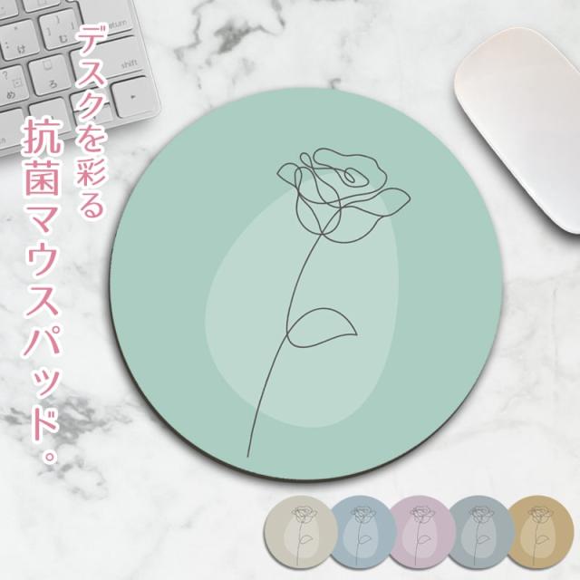 マウスパッド 線画 バラ 花 丸型 ニュアンス おしゃれ 大型 20×20cm 手首 疲労軽減 マウスパット 大判 PC パソコン 高耐久性 ワイヤレス 硬質 消音 抗菌 日本製