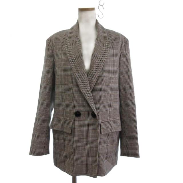 【中古】ザラ ZARA テーラードジャケット ブレザー ダブル チェック グレー系 S ■FF レディース
