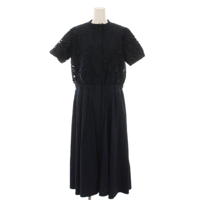 【中古】レキサミ REKISAMI ワンピース ロング レース 刺繍 切替 半袖 1 ネイビー RO-21128 /YM レディース