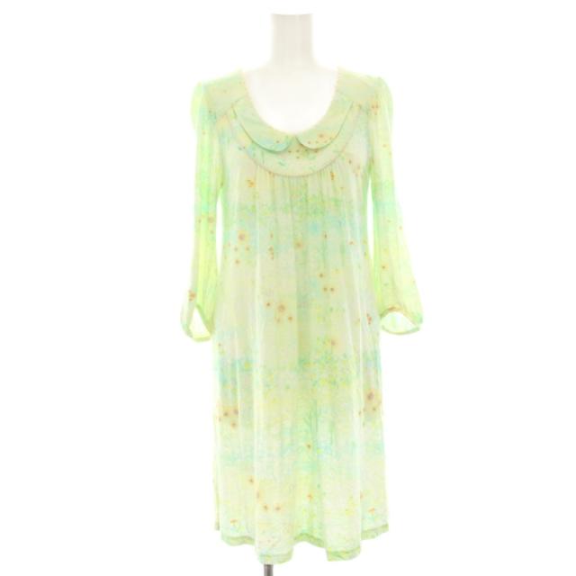 【中古】フランシュリッペ ワンピース ひざ丈 七分袖 花柄 総柄 ラウンドカラー レース M 黄緑 イエローグリーン