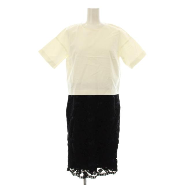 【中古】フィガロ パリ 2点セット ワンピース カットソー ミモレ ロング ノースリーブ レース切替 半袖 36 白 紺
