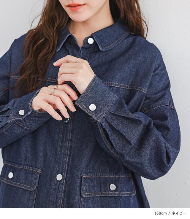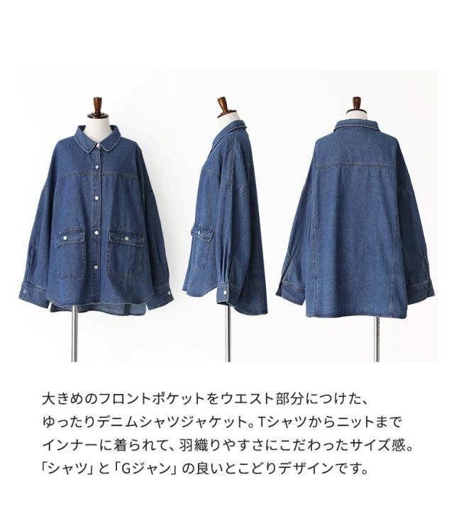 <冬新作>『デニムシャツジャケット』【メール便不可】【20】[デニムシャツ レディース トップス ライトアウター ジャケット 長袖 レギュラーカラー Gジャン 羽織 コットン100% 春 秋 冬]