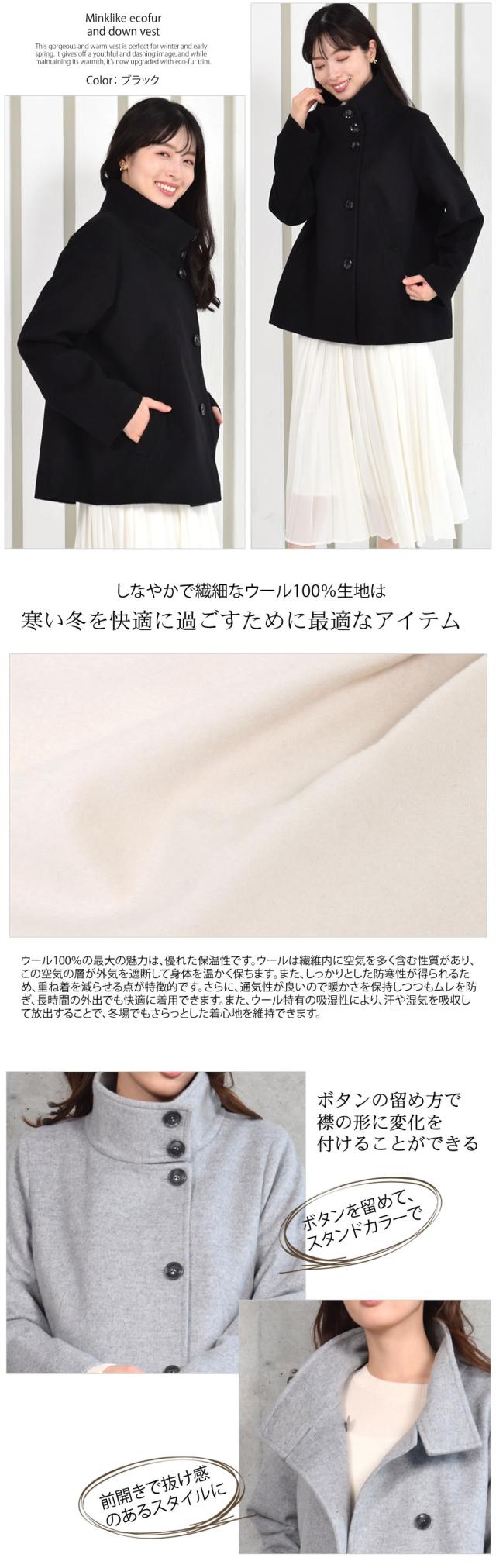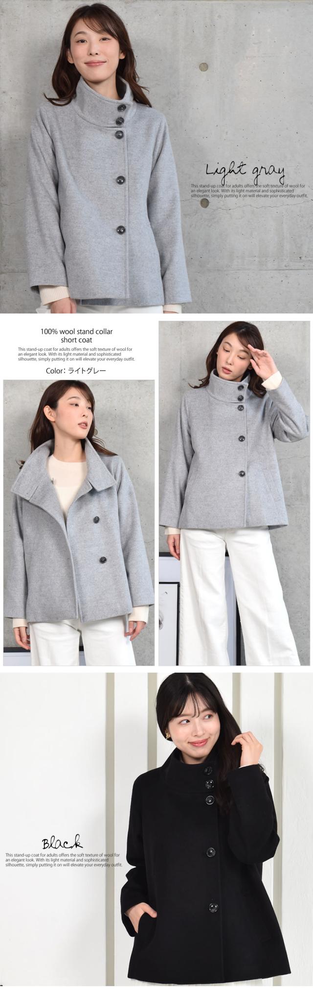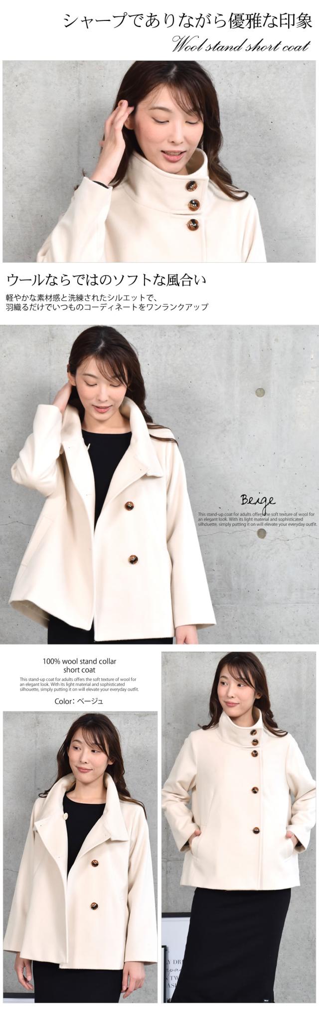 ウールコート 2WAY スタンド ショートコート ウール100% レディース ミセス きれいめ プレゼント ギフト スタンドショートコート ミセス ファッション (wo2560)