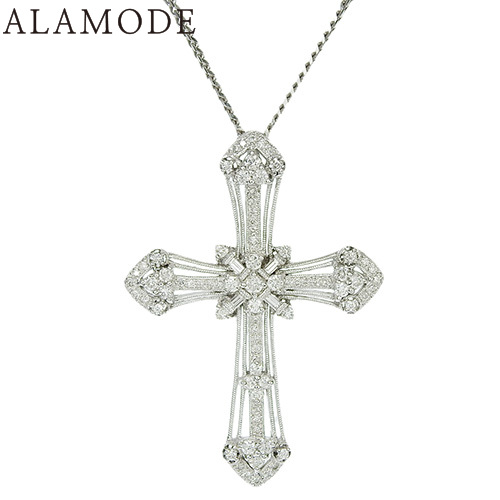 D1.26,0.18 ダイヤモンド クロス ネックレス K18 ホワイトゴールド WG ネックレス ジュエリー シルバー銀 レディース 41100074500【中古】【アラモード】