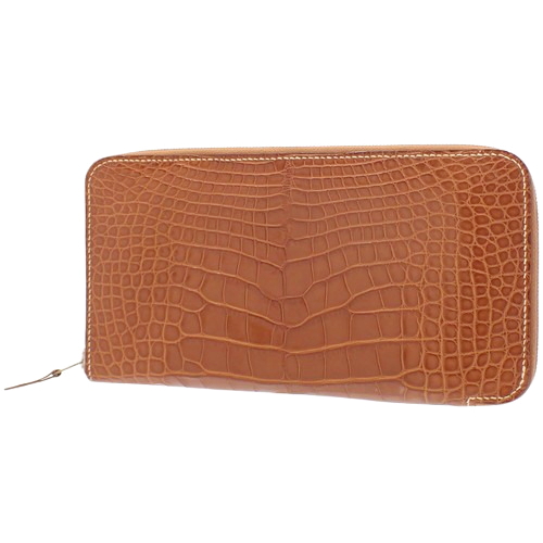 HERMES(エルメス) アザップ ロング ゴールド ブラウン茶 アリゲーターマット クロコダイル パラジウム金具 シルバー金具 M刻印 長財布 ロングウォレット ジップアラウンド ラウンドファスナー ユニセックス 40802143041【中古】【アラモード】