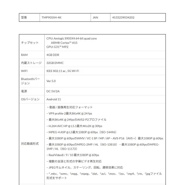 また、使用感はTMP905X3-4Kと同じで、OSバージョンがAndroid11となり、よりスムーズな操作が可能となります。