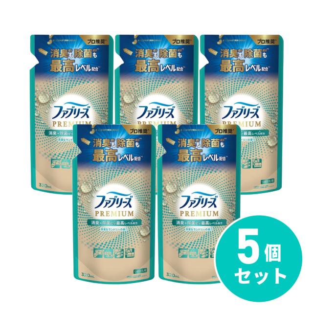 【まとめ買い】P&G ファブリーズ PREMIUM W除菌+消臭スプレー 清潔なランドリーの香り つめかえ用 320ml ×5個セット 消臭スプレー 衣類用 布製品
