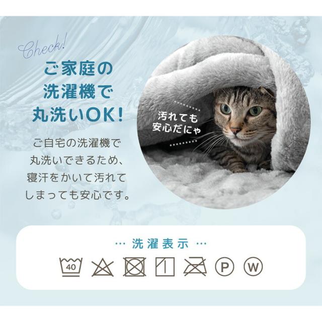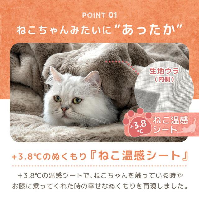 生地:ポリエステル100%カチオン生地(340g/m2、静電気防止カーボン糸、ねこ温感シート+3.8℃加工)