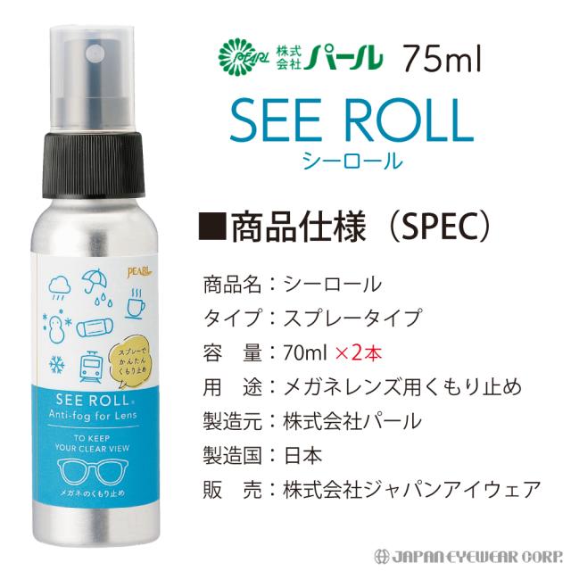 くもり止め 曇り止め スプレー メガネ 眼鏡 マスク パール くもり止め スプレータイプ 70ml SEE ROLL 2本セット シーロール レンズ ケア メガネのくもり止め 曇止め メガネクリーナー PEARLレンズ 汚れ くもりどめ