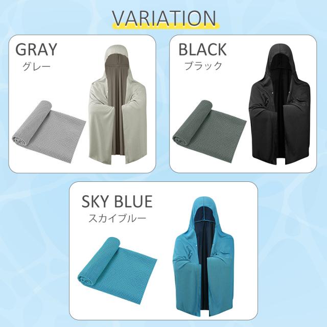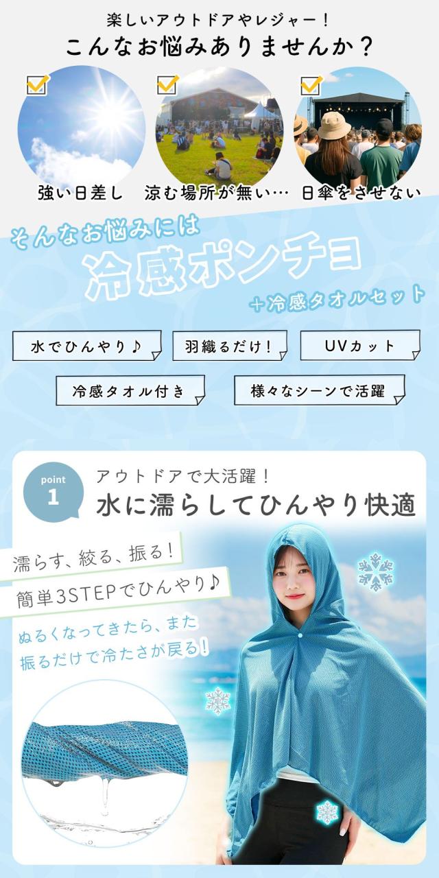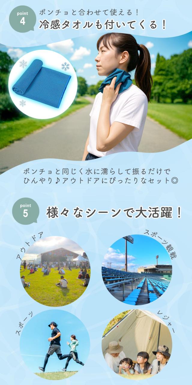 夏の強い日差しや暑さ対策に欠かせない、冷感ポンチョと冷感タオルのセットです。