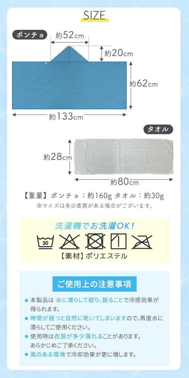 冷感/ポンチョ/タオルセット/UVカット/羽織る/冷感タオル付き/ポリエステル/大判/大きめ/軽量/コンパクト/生地/冷感ポンチョ/冷感タオル/クール/冷感ストール/日よけ/ひんやりグッズ/冷たく感じる/クールパーカー/クールタオル/熱中症対策/スポーツ/観戦/吸水/速乾/運動会/フェス/海/ラッシュガード/紫外線遮断/防災対策/大人/子供/子ども/速乾タオル/海/プール/ドライタオル/柔らか/肌触り