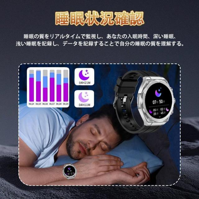 スマートウォッチ 日本製センサー 血圧 血中酸素 心拍数 睡眠管理 呼吸率 音楽再生 歩数計 Line着信通知 運動記録 女性周期 iphone/Android対応 ワイヤレス充電