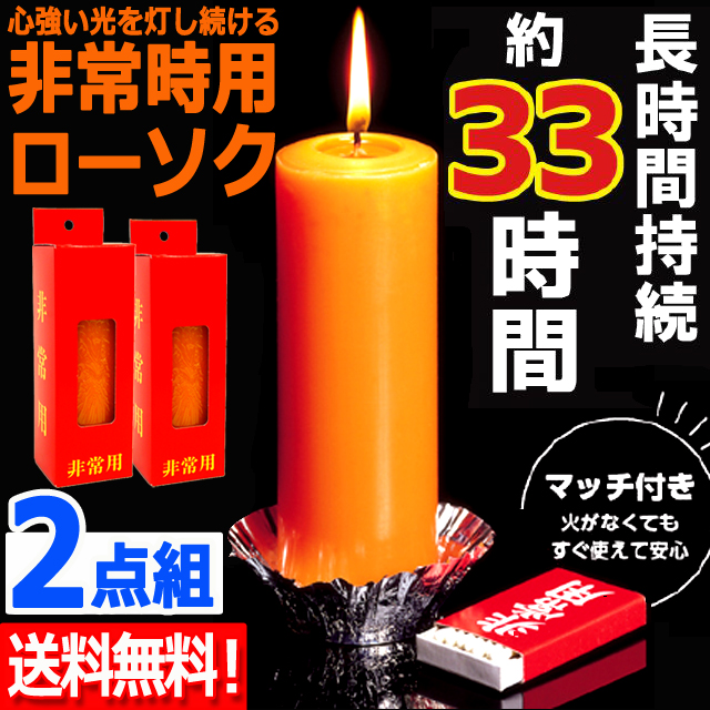 2点 約33時間持続の非常用安定ローソク マッチ付き 2点 壁掛け マッチ 日本製 電気 充電 電池 地震 台風 避難 停電 照明 防災袋 暗闇